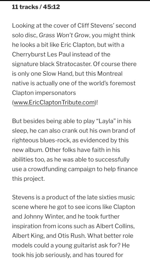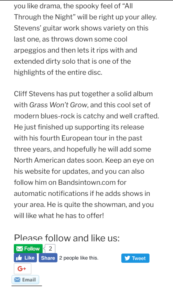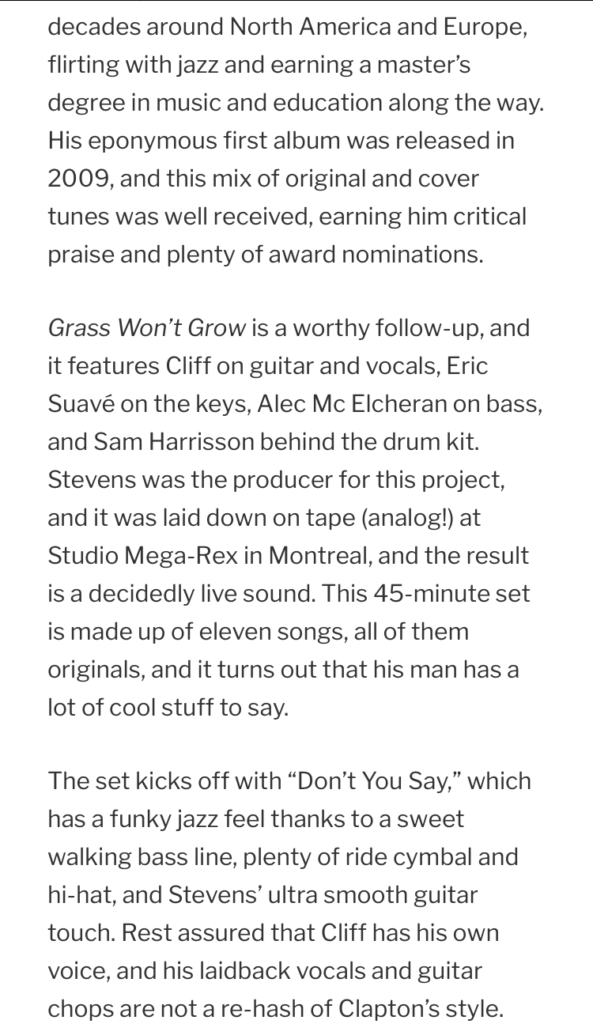 Review of Grass Won’t Grow in Blues Blast Magazine April 2017